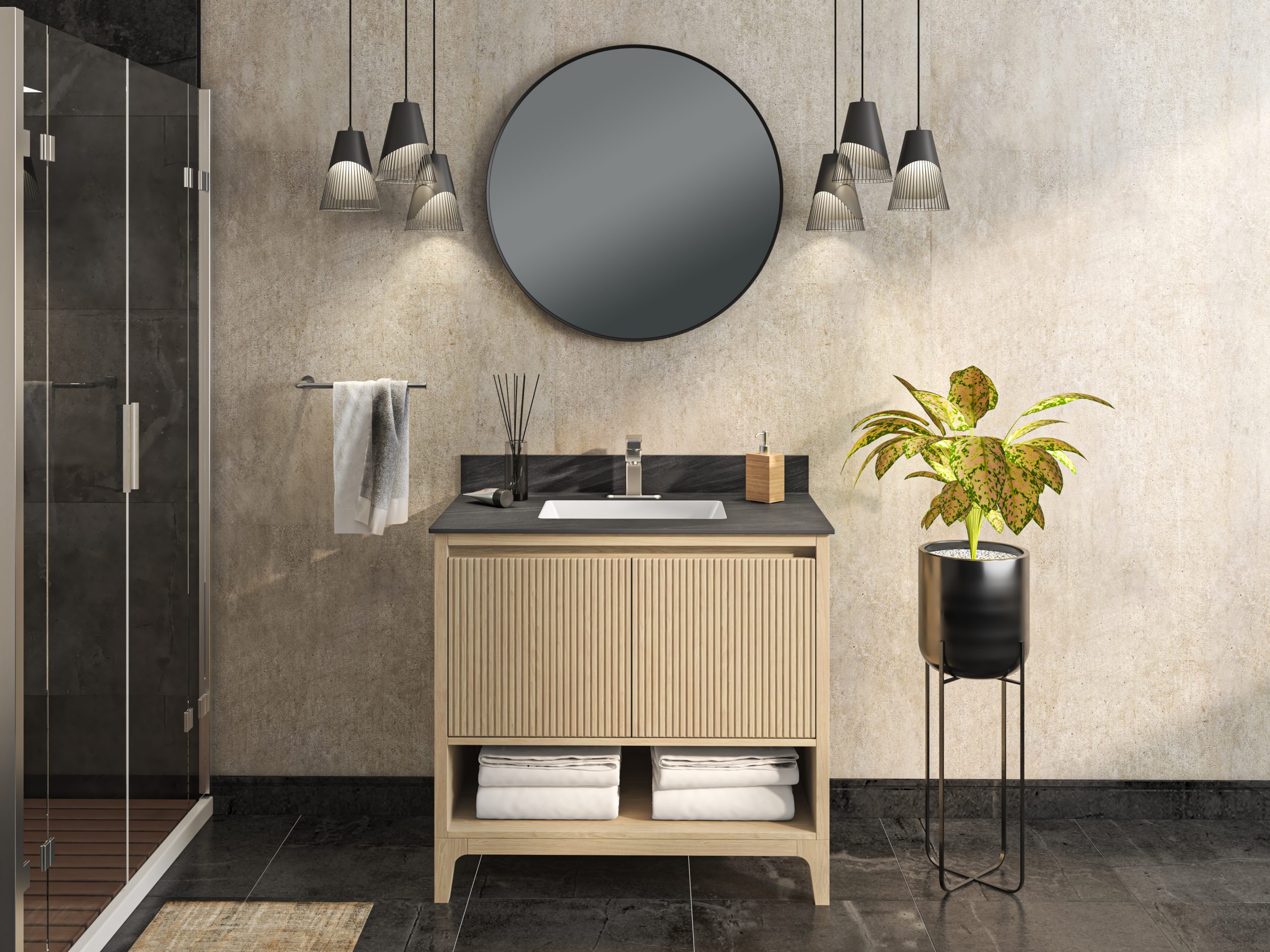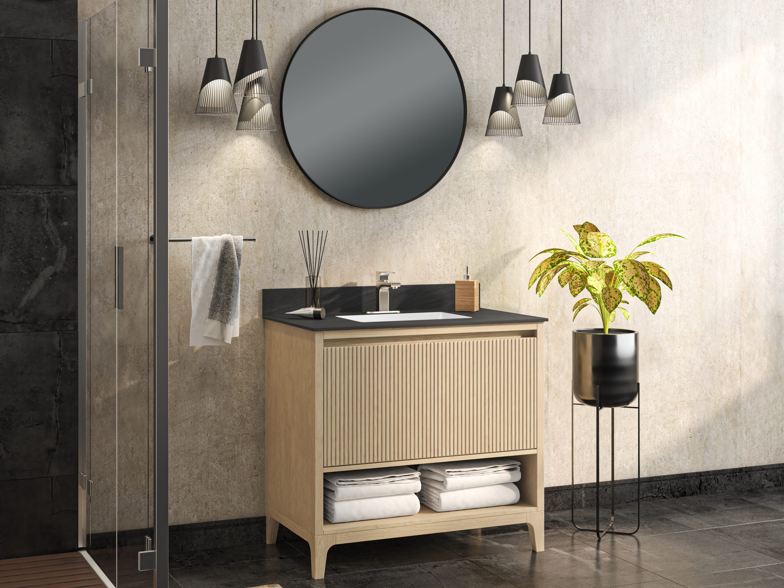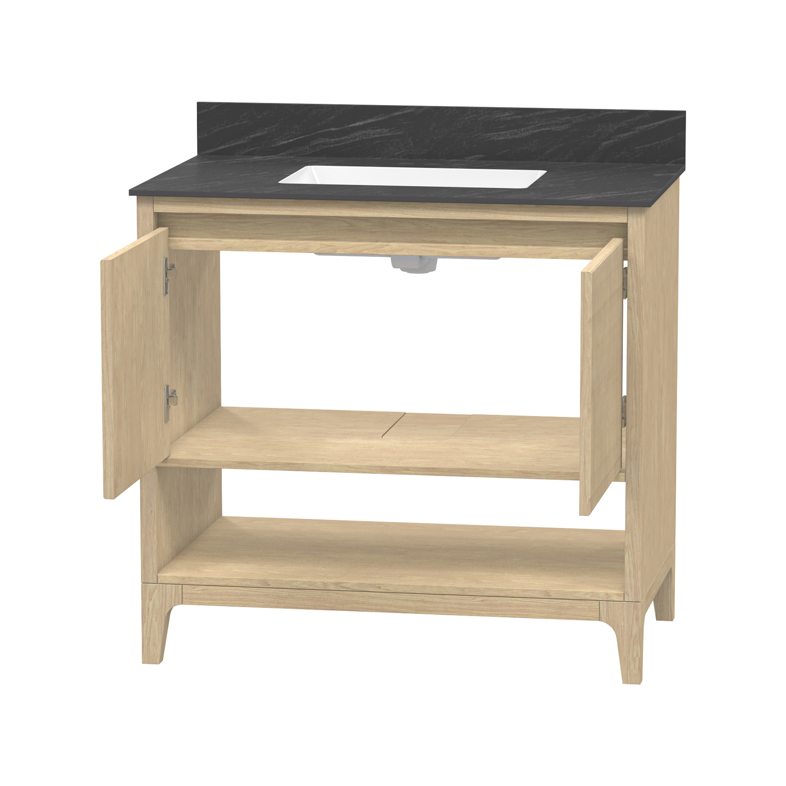 Redmond 37″W Natural blonde Vanity Cabinet with Sintered stone Gray top